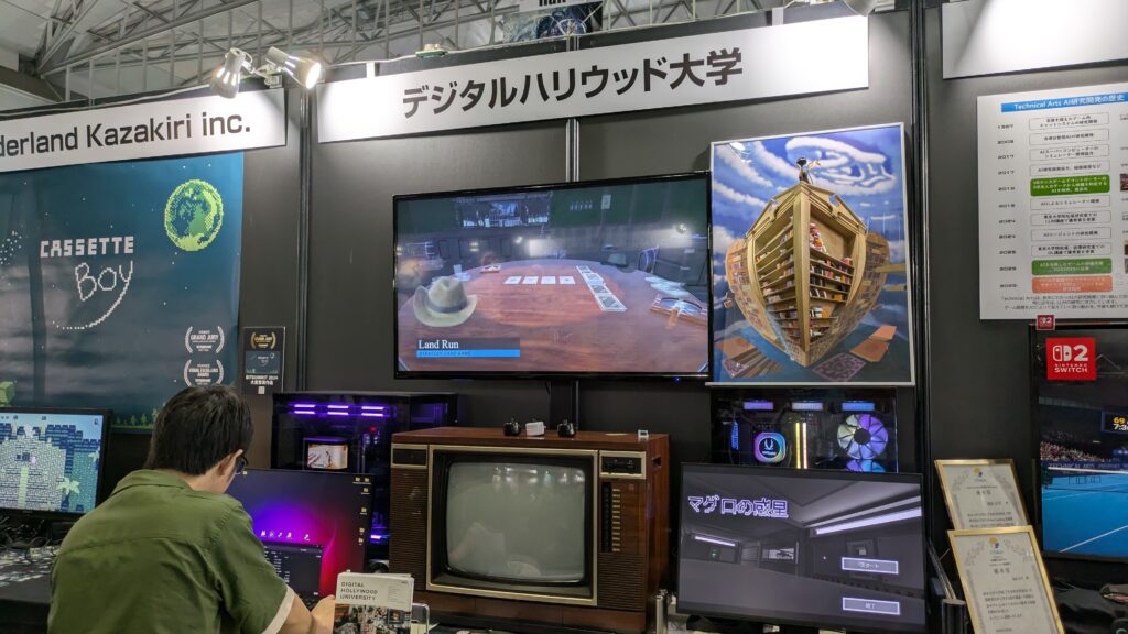 学生や研究室の先生方が制作したゲームが展示されており、実際に試遊することもできました。