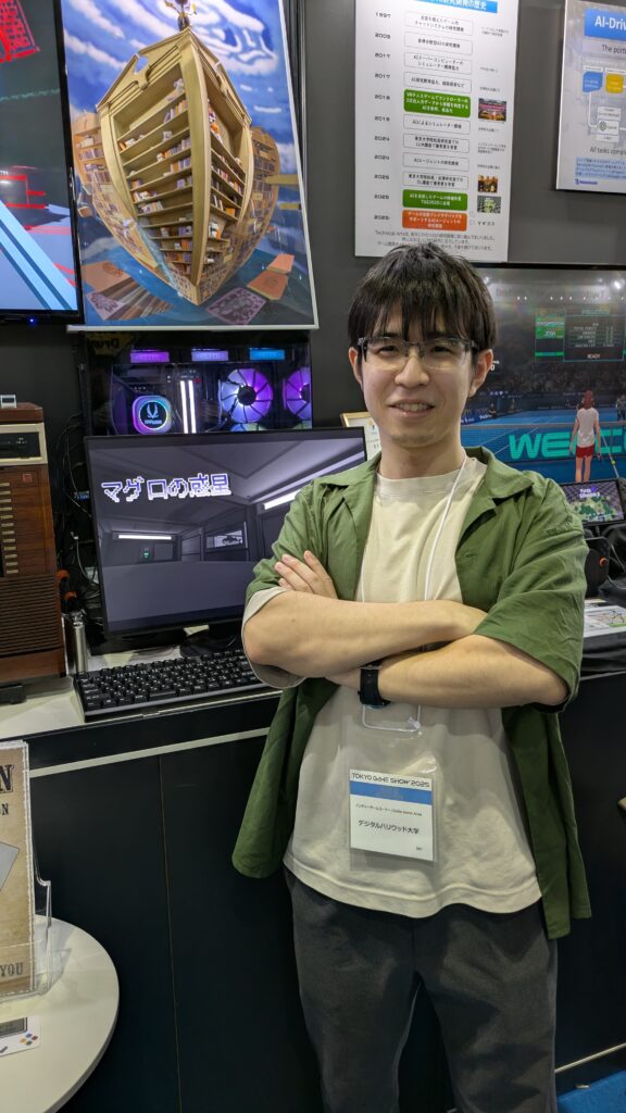 インディーゲームコーナーには、ハックの卒業生である山口登さんが出展していました。