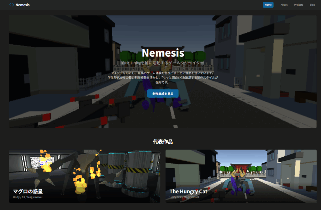 これまでに制作したゲームが公開されているポートフォリオサイトには、こちらからアクセスできます。